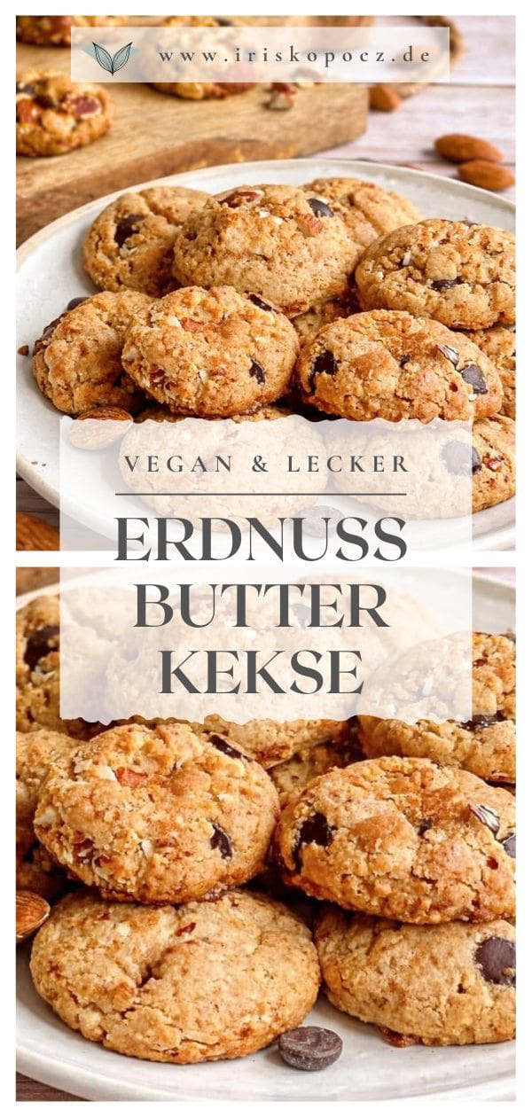 Erdnussfans aufgepasst: Diese veganen Erdnussbutter-Kekse mit Schokostückchen und Mandelbruch sind einfach unwiderstehlich lecker.